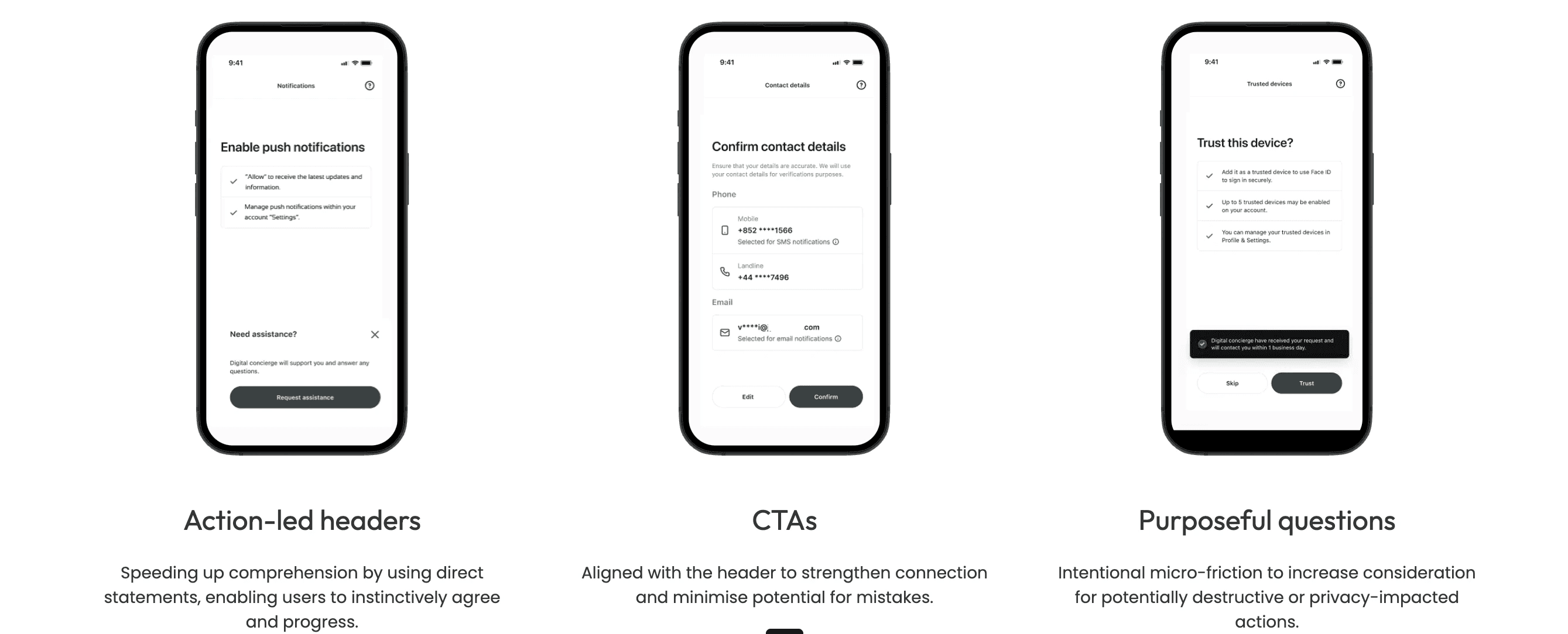 We progressively translated these principles into actionable standards. For example, creating a content framework that covered in-app notifications, for example: